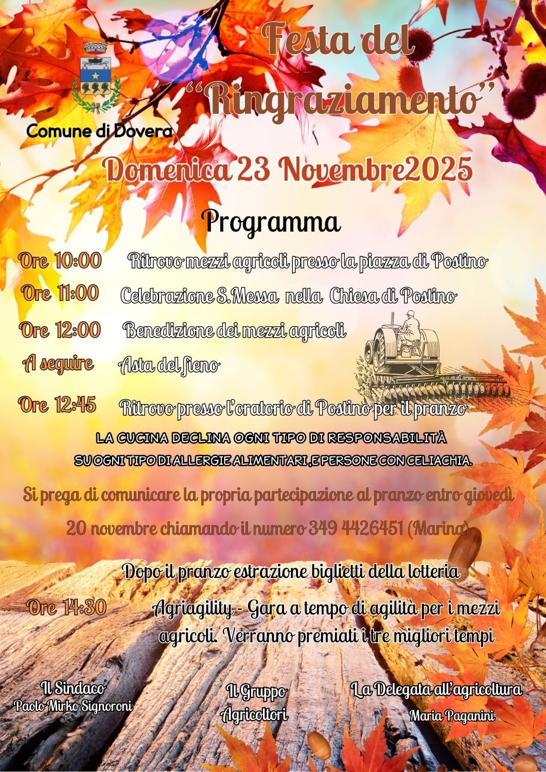 Domenica 23 Novembre 2025 dalle ore 10.00 verrà celebrata la “Festa del Ringraziamento” a Postino.